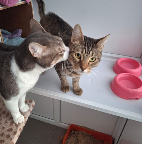 Best friends, Goku (tabby, 3 years, 10 months) and Trunks (white & tabby, 3 years, 1 month) are looking for a forever home together.